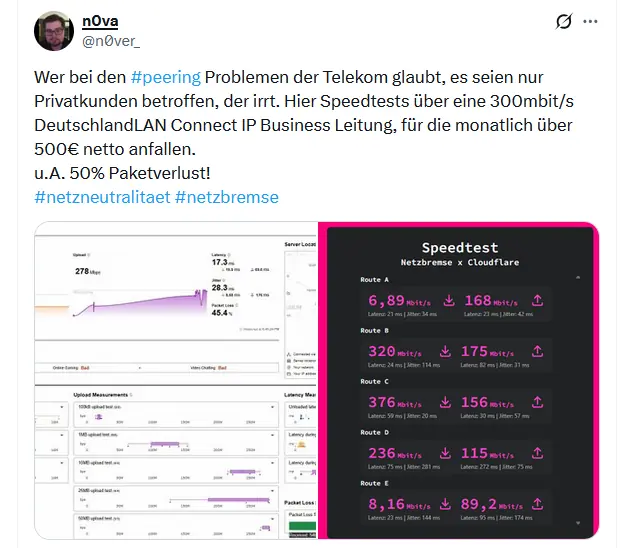 Telekom das beste Netz? Peering-Probleme mal wieder.